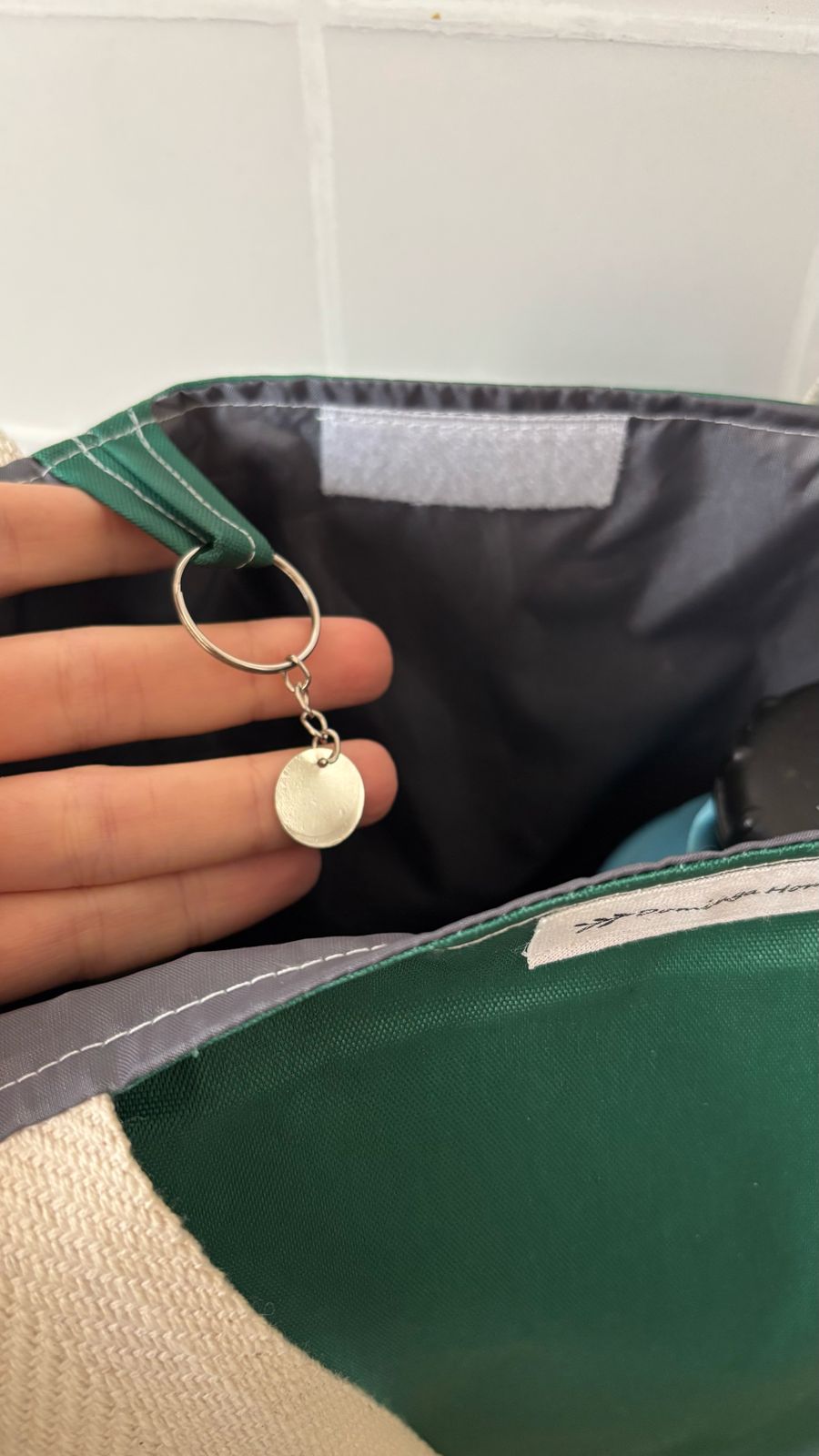 ✨ Bolso matero impermeable, con forreria de silver y tiras de algodón color crudo.